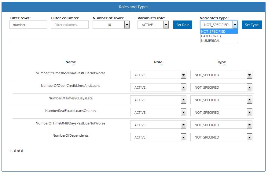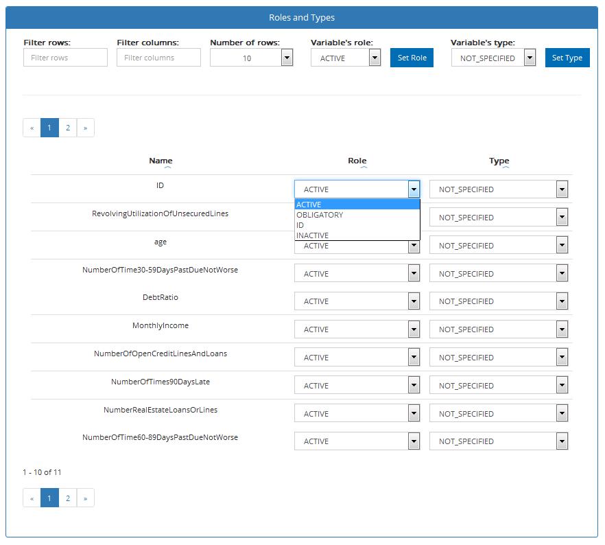 (optional) you can impose how ABM ought to use selected variables by indicating their type (ACTIVE, INACTIVE, OBLIGATORY, ID) and/or role (CATEGORICAL, NUMERICAL)