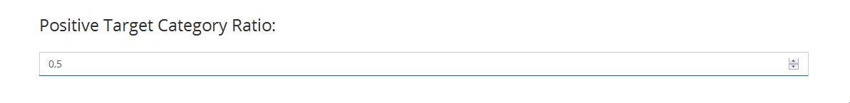 Positive Target Category Ratio: stratified sampling setting which specifies the proportion of the positive target in the resulting sample; if Stratification Mode is set as NONE, this option is ignored (default: 0.5)