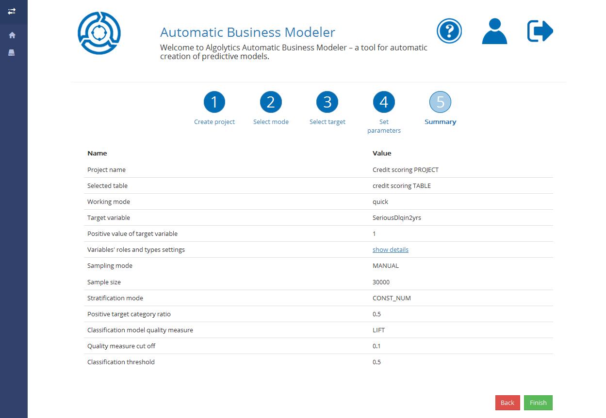 You are almost ready to build a predictive model with ABM. In this final step, we check whether all information provided in Steps 1,2,3,4 is correct.