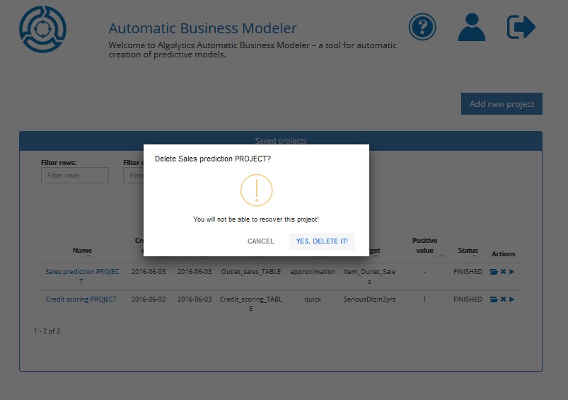 Remark: You can also change settings after the model is built to check how it performs with other parameters. However, to avoid overwriting already received results, we suggest adding another project with new parameters and comparing the models built within both projects.