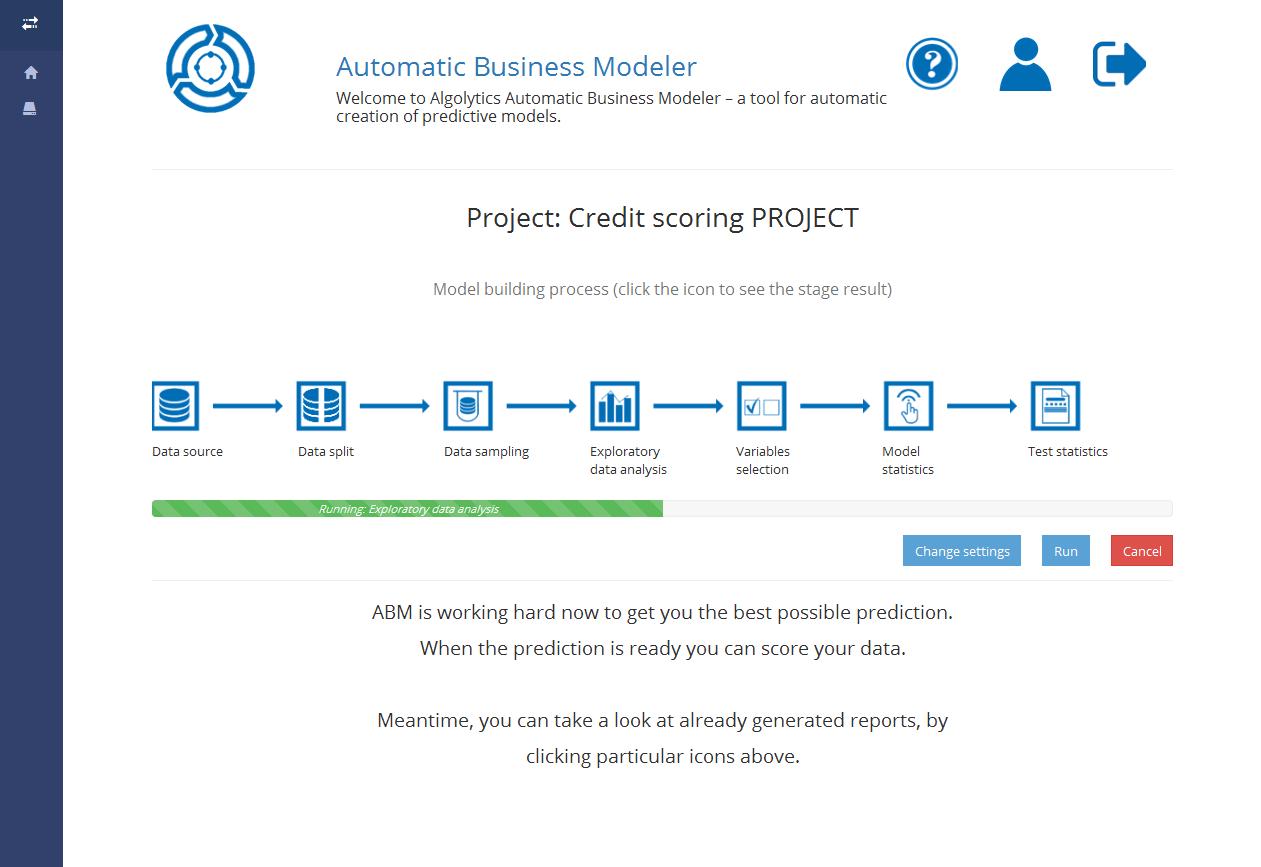 The Quick mode enables fast creation of the base model. Thanks to the use of the Regularized Regression algorithm in the modelling process, it assures you obtain an accurate model in a relatively short time. The algorithm automatically ensures the imputation of missing values, choosing the most significant modelling variables and application of optimal variable transformations